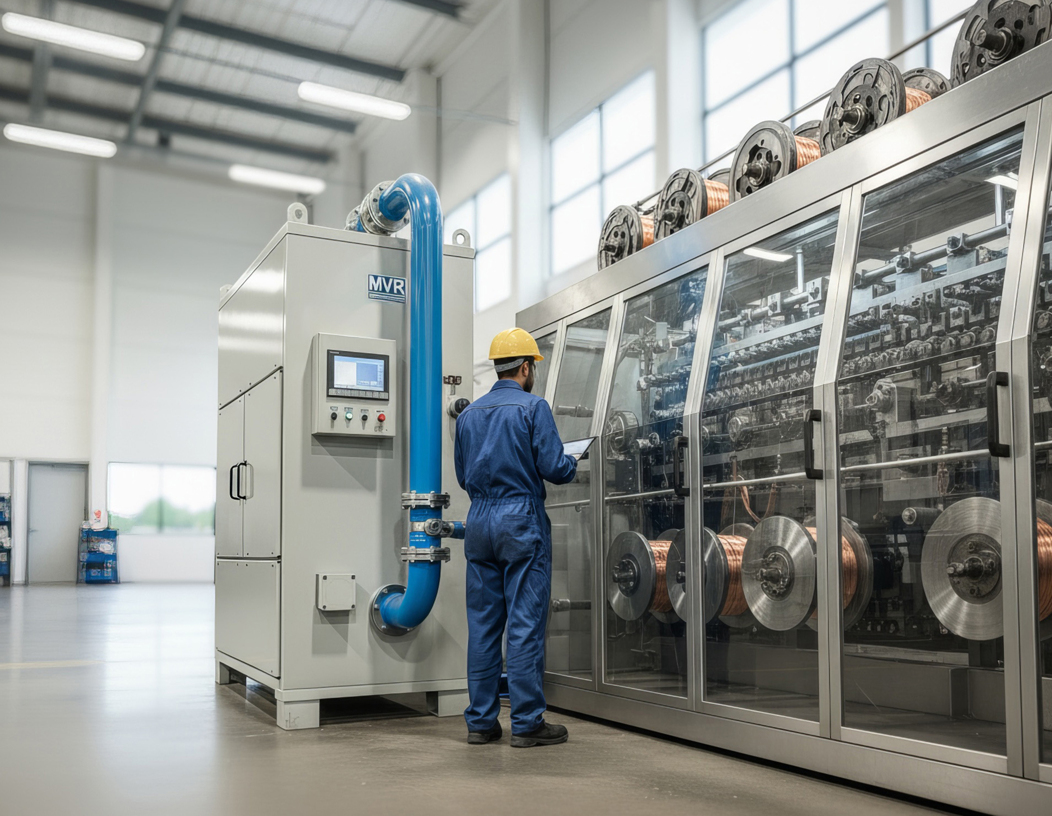 In der Kupferdrahtproduktion entstehen durch den Einsatz von Ziehemulsionen erhebliche Mengen an belastetem Abwasser. Wir zeigen, wie moderne MVR-Verdampfer-Technologie dieses Abwasser effizient aufbereitet, bis zu 98 % des Wassers zurückgewinnt und somit Entsorgungskosten senkt sowie ökologische Vorteile bietet.
